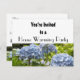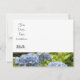 Um convite bonito para aquecimento de casa que inclui elegantes hipórteses azuis com folhagem verde brilhante.Personalize com todas as suas informações conforme desejado.
