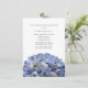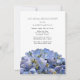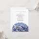 Convites azuis, chás de casamento florais para o casal. O barato, a papelaria do partido Jack e Jill, para homenagear a noiva e o noivo, tem bonito e realistas flores de hydrangea na parte inferior do papel branco com texto modelo preto.