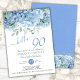 Convites de aniversário 90 florais de cor azul-periwinkle hydrangeas aquarela, para quando o convidado de honra completar 90 anos. Personalize nomes, datas e informações.