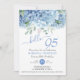 Hydrangeas aquarela azuis com 95 convites de aniversário florais, com um convidado de honra fazendo 95. Personalize nomes, datas e informações.