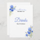 Elegant Blue Iris drinks sign designed for a Something Blue Before I Do bridal shower. Featuring soft blue floral artwork, this sign is perfect for displaying at the beverage or cocktail table. A beautiful way to guide guests while coordinating seamlessly with matching invitations, banners, table signs, games, napkins, plates, and other blue iris bridal shower décor.