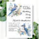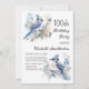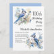 100º convite de aniversário com pinturas de belos Cintos Azuis sentados entre flores nos ramos de uma árvore. Entre em contato comigo para obter assistência com suas personalizações ou para solicitar outros produtos Zazzle correspondentes ou coordenadores para sua celebração.