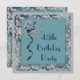Personalizados/personalizados elegantes 45 convites para comemorações de festas de aniversário para mulheres e meninas. Na frente desses convites de festa de aniversário glamourosos está uma imagem impressa de um cadarço azul com um bonito tapete branco, com uma flor azul e uma folha prateada e uma fita azul à direita. Atrás do cadarço azul há uma pequena borda de folhas prateadas e uma maior borda de glitz da moda da moda de bambar joias de rochas, todas impressas em um fundo de prata macio. O reverso deste cartão de aniversário feminino tem as mesmas imagens, mas sem o pano de fundo. Estes incríveis, elegantes, na moda, sofisticados e elegantes convites entre raparigas são decorados/impressos em ambos os lados. Todo texto é totalmente personalizável para atender às suas necessidades, se você precisar de assistência para personalizar seu produto, entre em contato comigo na minha loja e eu ficarei muito feliz em ajudá-lo.