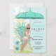Convite de chá de lingerie bridal apresenta robins ovo azul e flores tropicais verdes, guarda-chuva e loira noiva a ser. Disponível com cabelo loiro, castanho e vermelho e pele clara e escura.
