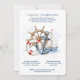 This classic maritime design is perfect for ocean lovers! Featuring a wooden ship wheel, a blue anchor, a life ring, and a sailboat over soft blue water, it's set against a clean white background with navy and red accents. Ideal for any seaside celebration or harbor-side party, it captures the adventurous spirit of the open sea with timeless illustrations.