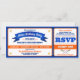 Fun, allstar baseball game ticket style birthday party invitation in your team colors of blue and orange.