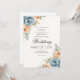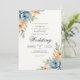 Delicate blossoms in muted blue and warm peach hues frame this elegant design. A gentle, romantic aesthetic perfect for a sophisticated union. The leafy accents add a touch of natural grace.