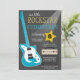 Turn up the volume for an unforgettable celebration! This blue rockstar birthday party invitation brings bold, music-themed style to your child’s special day. The design features a striking blue electric guitar illustration paired with a cool retro amplifier graphic that displays your event details in a fun, concert-style layout. The headline mixes modern script and bold block fonts, creating an energetic “rockstar” look kids love.
