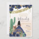 charro ocidental é um belo tema rústico para quinceanera ou celebração de aniversário. Este design apresenta elementos rústicos de rancho, lindos cactos e suculentos e rosas doces, adornada por ouro papel picado bunting e sotaques. Pode ser personalizado para qualquer ocasião! Este design também está disponível com uma garota de seu vestido de marmelho/bola em vários tons de pele e cabelo. Visite a coleção no compro Convidando Bonito para exibir todas as opções e suplementos disponíveis.