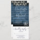 Um convite de casamento com luzes bonito de cordas e frascos-pedras, nomes modernos de guiões de assinatura e tipografia elegante em um fundo azul de madeira rústica. O convite inclui um cartão RSVP que pode ser interrompido e detalhes de informações de convidado. Projetado por Thisnotme©
