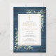 Apresentando delicadas folhas verde-aquarelas em um fundo azul-rústico de madeira, e um elegante crucifixo de ouro, este primeiro convite de santa comunhão chic pode ser personalizado com suas informações especiais. Projetado por Thisnotme©