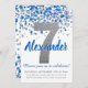 Convites Blue Silver Glitter Confetti Boy Sétimo Aniversári