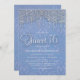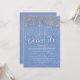 Doce convite de aniversário 16 para meninas com belas, elegantes luzes de cordas prateadas e damask em azul.
