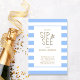 Convide amigos e familiares para verem o bebê com estes convites 'Sip & See', azuis e brancos, riscados. Estas são fáceis de personalizar, basta adicionar o nome do recém-nascido e o endereço onde a festa será realizada. A simples design de tipografia é moderna e na moda e a maneira perfeita de ter seus convidados para brindar com a chegada.