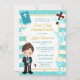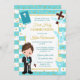 Convites Blue Stripe Brunette Boy First Santa Comunhão