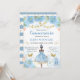 Cor d'água escura Escura Ballerina em design azul claro com flores azuis e douradas, cisne, calçados balés, borboletas e confete dourado.