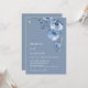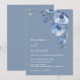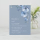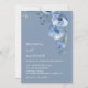 This elegant contemporary wedding invitation features watercolor painted 3D blue flowers and 3D text on a blue background.