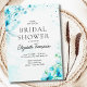 Diseño lindo y moderno para tu ducha de novia con lindas flores en acuarela en tonos azules con tipografia moderna y elegante. Dale un toque fresco y moderno a tu ducha de novia con este lindo diseño floral. Este diseño es ideal para duchas de novia de verano o de primavera para ver productos complementarios favor de consultar la coleccion de este lindo y moderno diseño floral para ducha de novia.