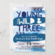 Convites Blue Watercolor Young Wild & Three aniversário de