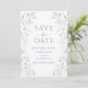 Elevem a sua papelaria de casamento boêmia com nossos convites de fotos elegantes e românticos Salvem a Data. Apresentando delicada floração azul-silvestre entrelaçada com flores secas de prado, esses convites refinados adicionam um toque de elegância e charme. Perfeitamente adequado para na moda ou casamento no inverno, estas Datas de Salvamento exclusivas capturam a essência de sua celebração inesquecível.