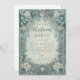 A soft and elegant winter design framed with frosted blue foliage, white roses, and delicate holly leaves. The vintage parchment center glows with a silvery patina, giving this Christmas invitation a refined and timeless charm. Perfect for sophisticated holiday parties, winter weddings, or festive gatherings with a touch of luxury.