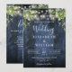 Convites Blue Wood String Luzes verdes Código QR Casamento
