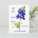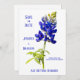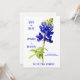 Uma fotografia única "de um tipo" de uma flor do Texas Bluebonnet com caule e folhas. Um fecho das pétalas azuis e um fundo macio que desaparece para um branco limpo. Um design moderno do tipo na cor azul da flor. Preencha com suas informações de casamento na parte de trás deste conjunto único de convites para o casamento.