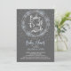 Chá de fraldas moderno em floco de neve com caligrafia tipográfica em uma cinza popular com flocos de neve azuis e brancos. Perfeito para um chá de fraldas de inverno.