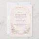 Blush neutral arch design with soft botanical accents and layered line framing, featuring a refined table setting with glassware and place setting detail. Designed for retirement dinner gatherings and formal evening celebrations in an elevated, coordinated setting.