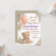 reate a heartwarming first impression with this beautifully designed blush teddy bear baby shower invitation. Featuring an adorable watercolor bear placed at the bottom center, delicate floral accents, and a softly textured pastel balloon, this design blends elegance with sweetness. The gentle blush wash background and clean center space provide the perfect area for adding your personalized event details.