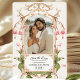 Aprecie os seus convidados com uma "Salve a Data" tão encantadora como a sua história de amor. Enquadrado com florescências cor-de-rosa suave e verde, este design capta o sentimento de romance florescente e começos alegres. É perfeito para casamentos de jardins, temas brancos e românticos modernos. Adicione um toque pessoal, incluindo uma foto preciosa de você e do seu parceiro no fundo, criando uma manutenção que seus convidados adorarão. Disponível em três lindas cores Rosa, Amarelo e Azul. Sinta-se livre para escolher a cor que corresponde ao seu tema de casamento.