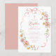 Sweet and graceful, this blush bow floral baptism invitation features delicate watercolor ribbons, soft pastel blooms, and a charming butterfly accent. A subtle cross at the top adds a meaningful touch, while the romantic script and classic serif fonts create an elegant, timeless look perfect for a baby girl’s special day.