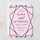 Este convite de casamento na moda apresenta um design geométrico marinho azul moderno num fundo cor-de-rosa pincelado.