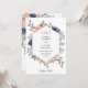 Este design de casamento moderno apresenta bonito cor-de-rosa e azul-marinho pintado de flores a aquarela em um fundo branco nítido. Um estilo 'chic' e 'trendy' que também apresenta uma imagem geométrica rosa dourada falsa para uma bela aparência 'on-cent'. Uma mistura de texto ousado, serif e script manuscrito.