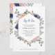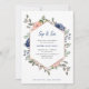 Estes belos chás de fraldas sip e veja convites apresentam bonito flores cor-de-rosa e azul-marinho pintadas a aquarelas em um fundo branco nítido. Um estilo 'chic' e 'trendy' que também apresenta uma imagem geométrica rosa dourada falsa para uma bela aparência 'on-cent'. Uma mistura de texto ousado, serif e script manuscrito.
