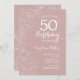 Blush Floral 50º Convite de aniversário. Design minimalista moderno com desenhos botânicos em destaque e letra de script de tipografia. Simples trendy convida cartão perfeito para uma festa de na moda. Pode ser personalizado para qualquer idade. Impressos convites Zazzle ou modelo de impressão digital instantânea para download.