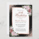 Convite de aniversário floral, preto e rosa, elegante, com flores cor-de-rosa pinceladas e verde que enquadra os detalhes da festa de aniversário. Convite de aniversário de ouro preto e rosa. Personalize facilmente esta modelo a qualquer festa de aniversário.