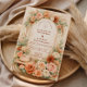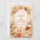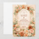 A romantic blush and peach floral design framed by a soft watercolor arch of roses, garden blooms, and airy pampas accents. Warm neutrals and muted sage greenery create an elegant, timeless aesthetic with a subtle western touch from the hat and rope detail. The composition feels refined yet natural — perfect for a boho western celebration, ranch wedding, or romantic garden ceremony. Fully customizable with your names and event details.