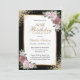 Convites Blush Floral Black Dourado Confetti 60º Aniversári