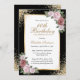 Elegante convite de aniversário floral cor-de-rosa pincelado com flores cor-de-rosa pinceladas e verde enquadrando os detalhes de aniversário dentro um quadro dourado adornado com confete dourado. Enche o convite de aniversário floral. Concurso de aniversário de Blush e ouro. Convite de aniversário rosa e dourado. Convite de aniversário rosa. Convite de aniversário floral preto e ouro. Personalize facilmente esta modelo a qualquer festa de aniversário.