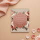 This design evokes a romantic and gentle mood with its soft blush pink and cream floral elements. The artwork features lush blooms reminiscent of peonies, accented with muted green foliage for a touch of natural elegance. It's perfect for setting a sweet and sentimental tone for a special day.