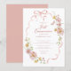 Celebrate her special milestone with this soft blush floral First Holy Communion invitation. Delicate watercolor flowers in pink and pastel yellow frame the design, accented by a flowing ribbon, subtle cross detail, and a sweet butterfly for an extra touch of charm. The elegant script typography paired with a clean, airy layout creates a timeless and feminine look perfect for spring celebrations.