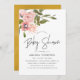Convites Blush floral de aquarela e Chá de fraldas Dourado