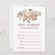 As rosas cor-de-rosa e douradas ficam Chás de fraldas adivinhando cartões de jogo com texto burgundy e reverso.