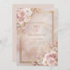 Create a dreamy and ethereal atmosphere for your special celebration with this breathtaking invitation. The background features a soft, misty texture that blends the look of watercolor clouds with polished pink marble, scattered with faint gilded glitter dust for a magical finish. A sophisticated double-line geometric frame in an antique metallic finish defines the space, providing a modern structure amidst the softness. Lush, romantic arrangements of full-blown blush blooms and crisp ivory flowers anchor the corners, accented by delicate bronze branches and airy filler buds. This romantic and feminine design is a flawless choice for a spring garden wedding, a fairytale-themed bridal shower, or an elegant quinceañera. You might also select this pastel aesthetic for a sweet sixteen birthday party, a sophisticated baby shower for a girl, or a romantic engagement announcement for a couple who loves soft, dreamy colors.