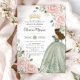 Personalize este elegante convite floral Quinceañera / 16 anos doce, fácil e rapidamente. Basta clicar no botão Editar usando ferramentas de Design para editar os textos, alterar as cores das fontes e das fontes. Apresentando flores embaçadas de cor aquática macia, uma garota vestida com um lindo vestido de bola verde sábio e uma coroa de princesa de ouro. Perfeito para quinceanera, doce dezesseis, 18º aniversário, bola de debutante e muitas outras ocasiões! Itens correspondentes disponíveis no repositório. c) Paperie fina somerset
