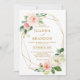 Convite botânico floral Elegante, cor-de-rosa-pincel/primavera de pêssego, com um buquê de rosas de aquarela pastel macio, pénicas e hipnagas em tons de rosa-pincel, pêssego e creme com folhas botânicas verdes e folhas de eucalipto e estrutura geométrica de brilho dourado. Uma escolha moderna de design, perfeita para casamentos de primavera e verão.Por favor, encontre mais designs e variações na minha loja de "blisswedingpaperie". E sinta-se à vontade para contactar-me para mais personalizações ou itens correspondentes