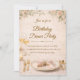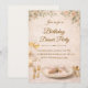 Blush gold dinner party design featuring soft floral greenery, warm neutral tones, and flowing script typography. Champagne glasses, candle accents, and a refined place setting complete the layout—suited for birthday dinners, intimate gatherings, and restaurant-style celebrations.