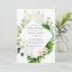 Verde-cor-de-rosa-claro e tropical de verão, chá de fraldas floral de cor-de-água convida orquídeas brancas, proteas-rei brancas, magnólias, eucalipto e verde profundo.