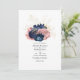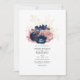 Convite para casamento floral cor-de-rosa, marinho azul e dourado com tipografia elegante personalizável para suas especificidades de evento.
